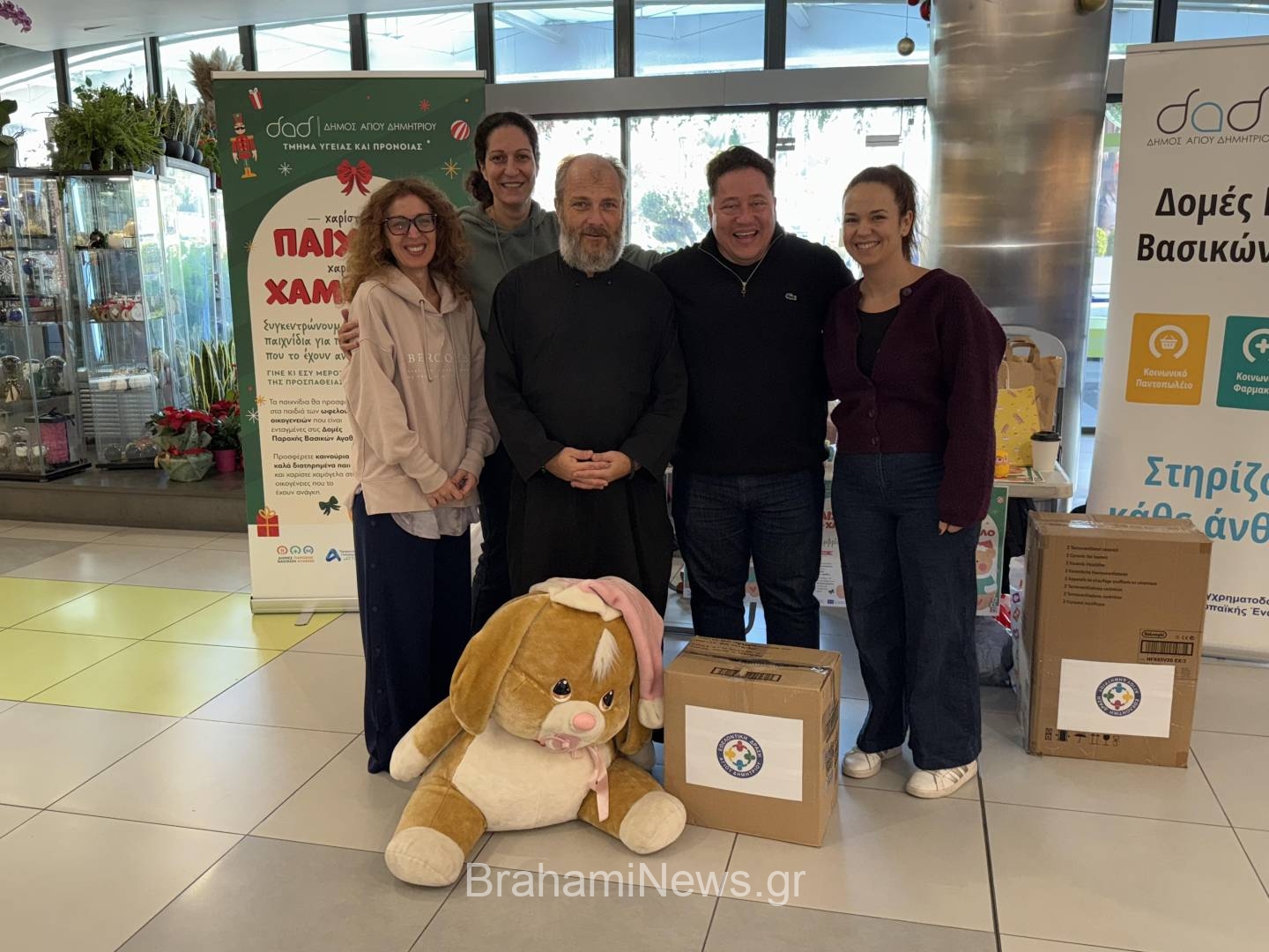 Αντιπροσωπεία της Εθελοντικής Δράσης του Αγίου Δημητρίου σε συντονισμό των Σήφη Μακρυνάκη και Μάκη Ράπτη, συγκέντρωσαν παιχνίδια και τα παρέδωσαν συσκευασμένα σε κούτες, στην ομάδα της Κοινωνικής Υπηρεσίας. Η οποία υπηρεσία, προεξάρχοντος του πατέρα Φαλιέρου, μαζί με τους συνεργάτες του, βρέθηκαν το Σάββατο 13 Δεκεμβρίου 2025 σε ειδικό κιόσκι, εντός του Athens Metro Mall, όπου όλοι οι πολίτες θα μπορούσαν να προσφέρουν τα δώρα αγάπης στα παιδιά.