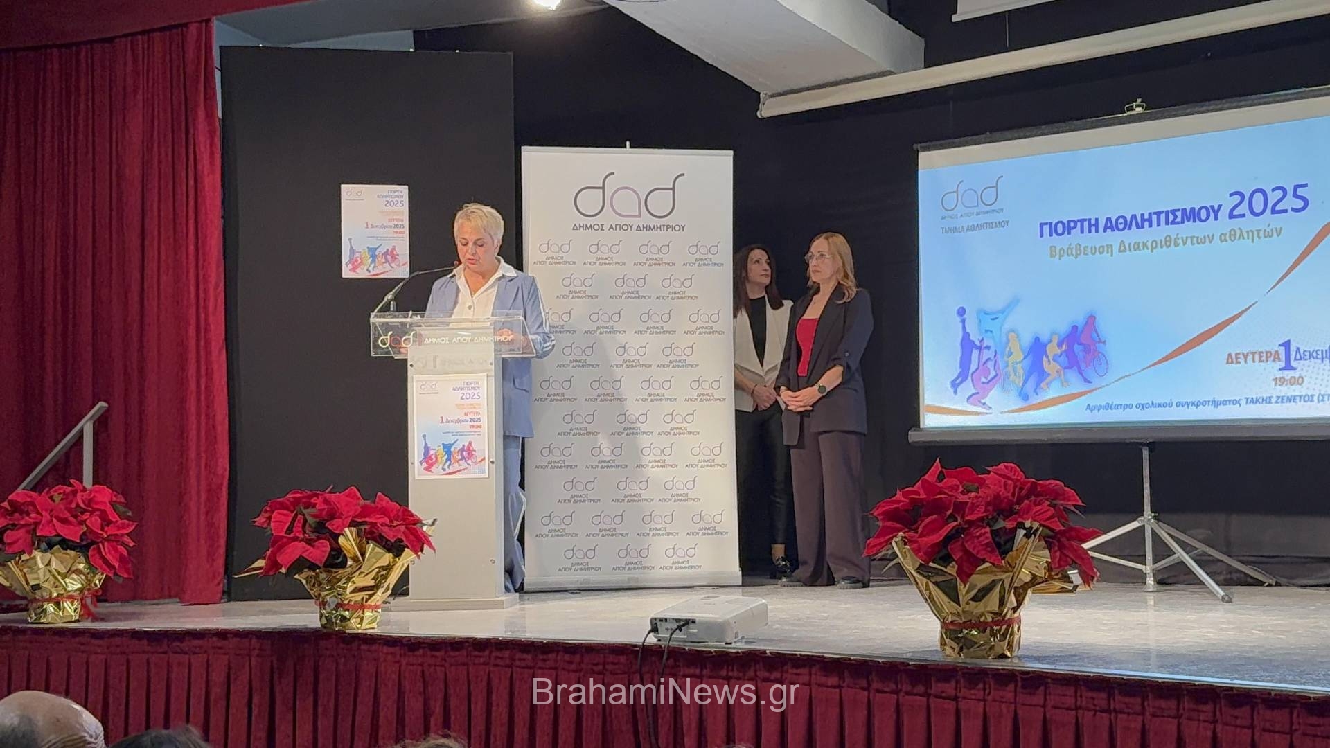 Ο δήμαρχος Αγίου Δημητρίου, Στέλιος Μαμαλάκης στο χαιρετισμό του, τόνισε: «Ο Δήμος Αγίου Δημητρίου αγαπά τον αθλητισμό και απόψε τιμά τους πρωταγωνιστές του! Αξίζει ένα θερμό χειροκρότημα σε όλες και όλους, όπως και στις οικογένειες τους, που στέκονται δίπλα τους, όντας αφανείς ήρωες και πυλώνες των επιτυχιών τους. Οι διακρίσεις σε Πανελλήνια Πρωταθλήματα, Πανευρωπαϊκές και Παγκόσμιες διοργανώσεις, τιμούν και διαφημίζουν με υπερηφάνεια την πόλη και τη χώρα μας. Αποτελεί τιμή για όλους και απόδειξη ότι τα μεγάλα επιτεύγματα γεννιούνται από τη συνέπεια, το πάθος, το όραμα αλλά και τη στήριξη. Ως διοίκηση, στηρίζουμε όχι μόνο τον ατομικό και ομαδικό αθλητισμό, σε υψηλό επίπεδο αλλά και τον μαζικό αθλητισμό, παρέχοντας καλές υπηρεσίες και αξιόπιστες εγκαταστάσεις!»
