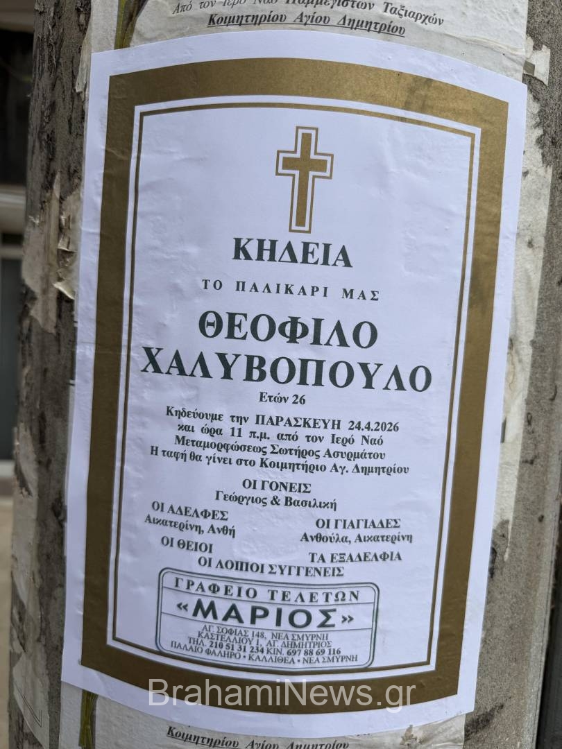 - Η κηδεία του άτυχου Θεόφιλου θα πραγματοποιηθεί την Παρασκευή 24 Απριλίου 2026. Η νεκρώσιμος ακολουθία θα ψαλεί στις 11 το πρωί στον ιερό Σωτήρος στον Ασύρματο και η ταφή θα πραγματοποιηθεί στο νεκροταφείο του Αγίου Δημητρίου.