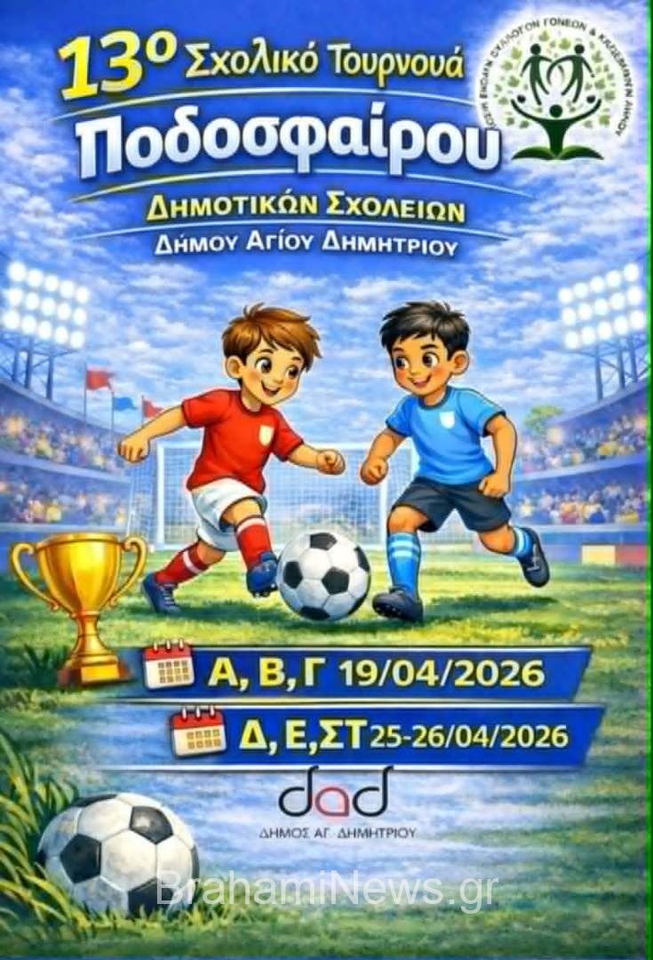 Πραγματοποιήθηκε με μεγάλη επιτυχία 13ο τουρνουά ποδοσφαίρου δημοτικών σχολείων του δήμου Αγίου Δημητρίου, με τη συμβολή των σχολείων αλλά και του δήμου Αγίου Δημητρίου.